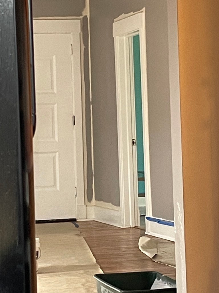 I also ordered paint with a discount, from my “painting nephew” (coworker’s son) for most of the rooms, so that I could get those painted by a family friend and his crew before moving day. The timeline for the painters ended up being too close to moving day, partially because they had to do a LOT of priming the walls. The sellers had done a hurried painting job in light colors like peach and yellow (ick), which had done nothing to disguise the uneven texture of the bad paint jobs.