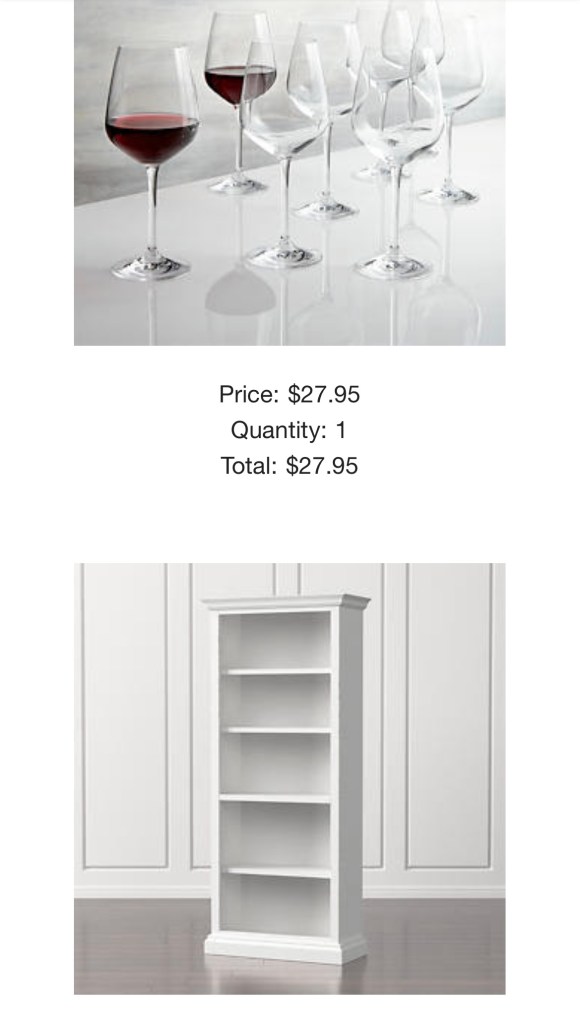 Back inside, I locked the door, took off my coat and boots, and stood in my kitchen, feeling like the worst human ever. After a few more minutes of crying, I got out my stick mop and cleaned the floor off to get rid of any mouse DNA. I poured a small amount of Bailey’s liqueur, then sat down at my dining room table and opened up my iPad to do some online shopping therapy, at Ikea and then Crate and Barrel.
